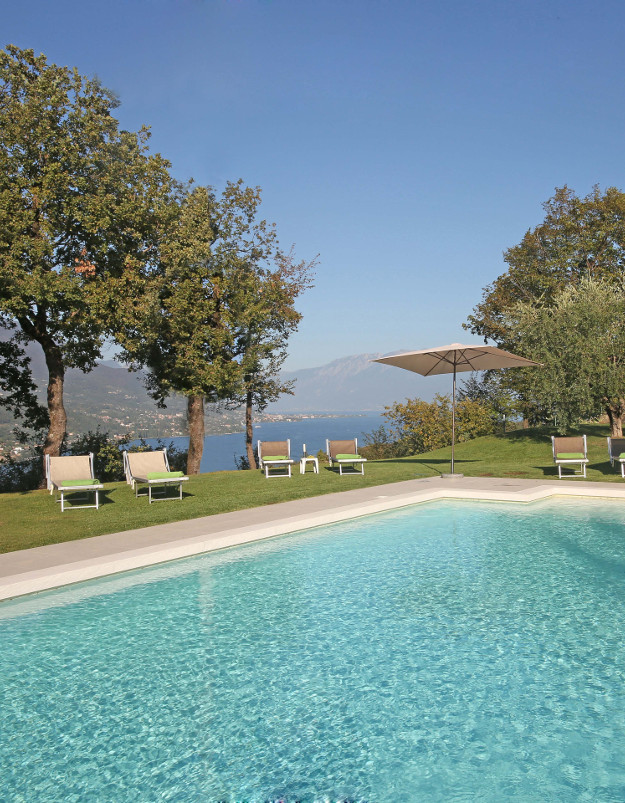 Villa Desire is a gorgeous villa perched on the hillside over the gulf of Salo, with stunning lake views. The villa has a large private pool (11m x 6m) immersed in a 7000 sqm private park of olive groves, meadows and woods. The villa was designed to enjoy the view of the Gulf of Salò, has a large living room with high wooden ceilings and windows with breathtaking views, three of the bedrooms have windows with lake views, new swimming pool surrounded by a well-kept garden. The villa has been completely renovated recently and has new systems and accessories, new bathrooms, a new kitchen, air conditioning in the main floor bedrooms and beautiful antiques selected in combination with modern comfort.