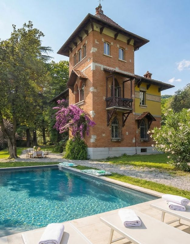 The villa enjoys a beautiful lake view, has a structure characterized by a central tower and an external Art Nouveau architecture, wooden floors and a precious central staircase leading to the floors of the villa.