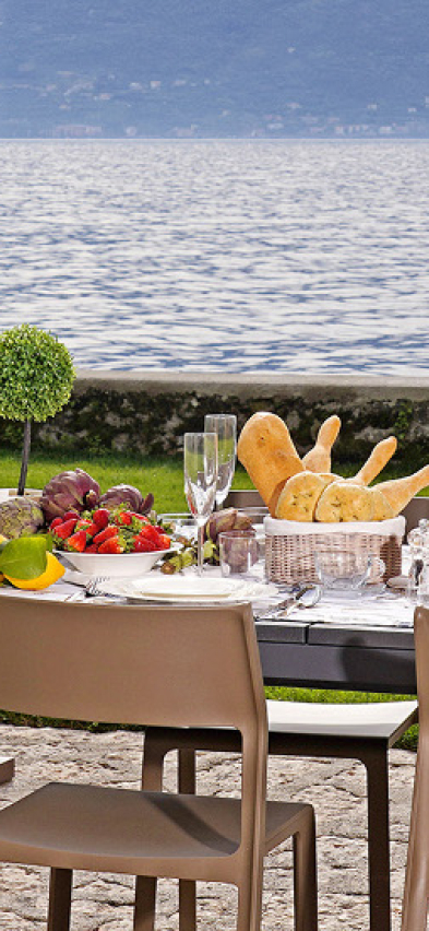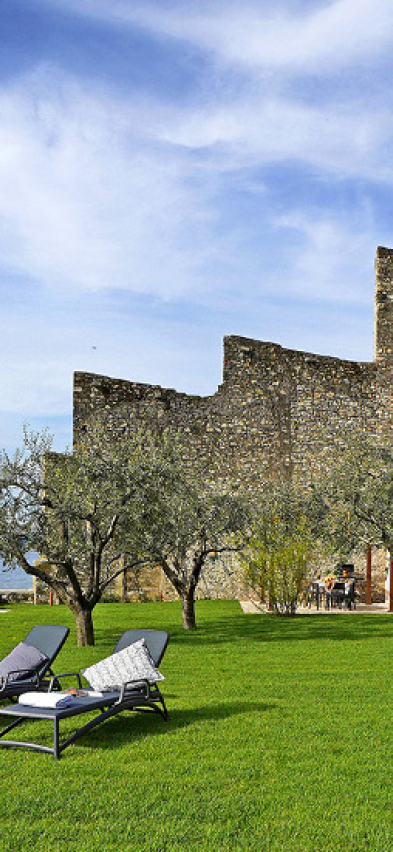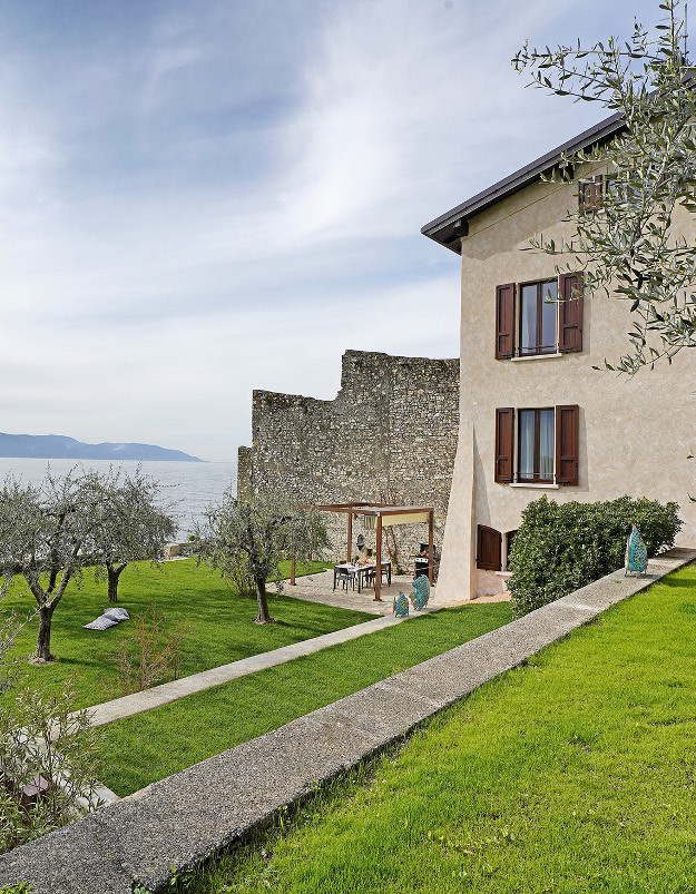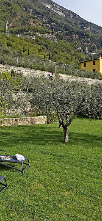 The villa can accommodate 5 + 2 people in 3 bedrooms with 3 bathrooms. The common areas are luxurious, spacious and bright, with a fully equipped kitchen, dining room both inside and outside (with barbecue) and beautiful handcrafted design furnishings. The outdoor areas are also fully furnished, with sun loungers in the lakefront garden, lovely terraced gardens and lawns and a large outdoor mini hydromassage pool overlooking the lake.